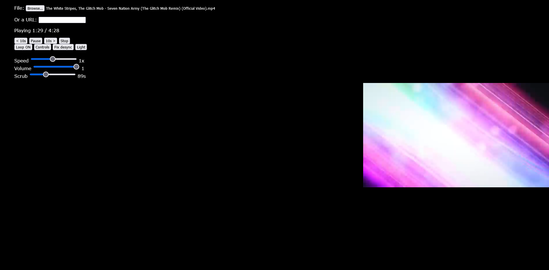 An extremely simple media player. Supports both audio and video. Has precise controls, like speed and