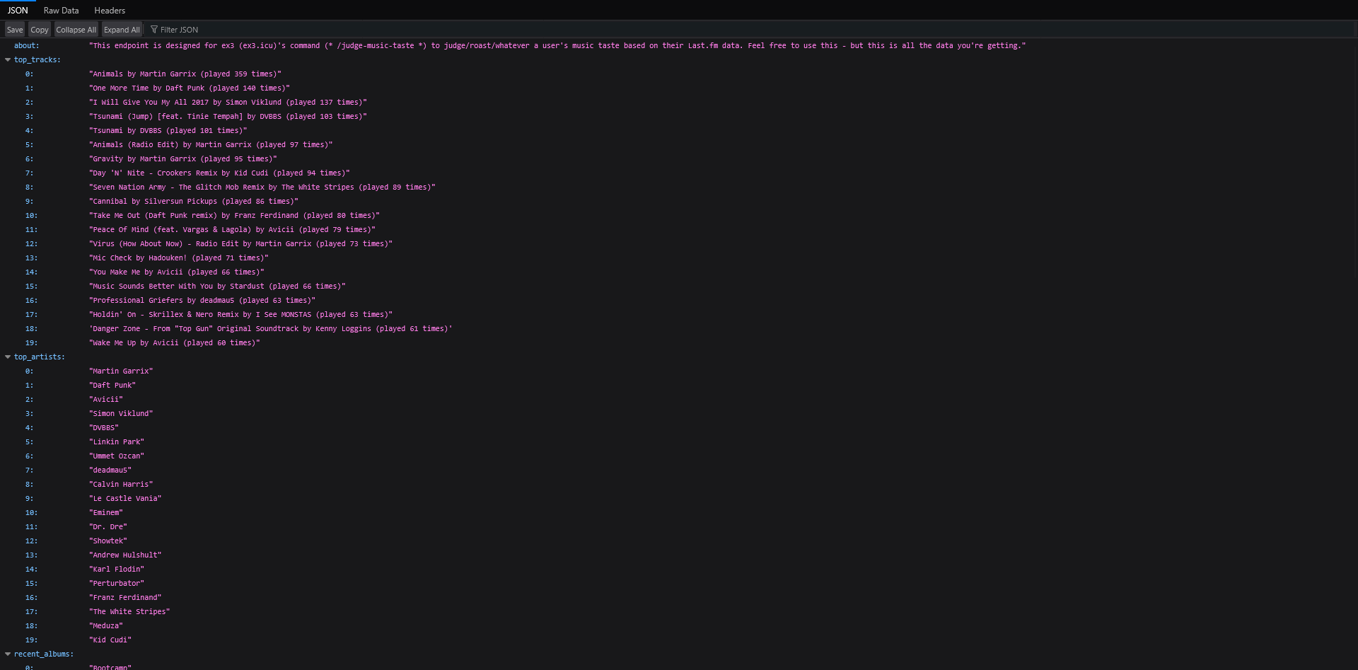 A semi-advanced music Discord bot. Nothing complex to use, but it supported every website yt-dlp did (simply wrapped it); making it quite powerful. Shut down after I accidentally destroyed the server, couldn't be bothered to rebuild it.